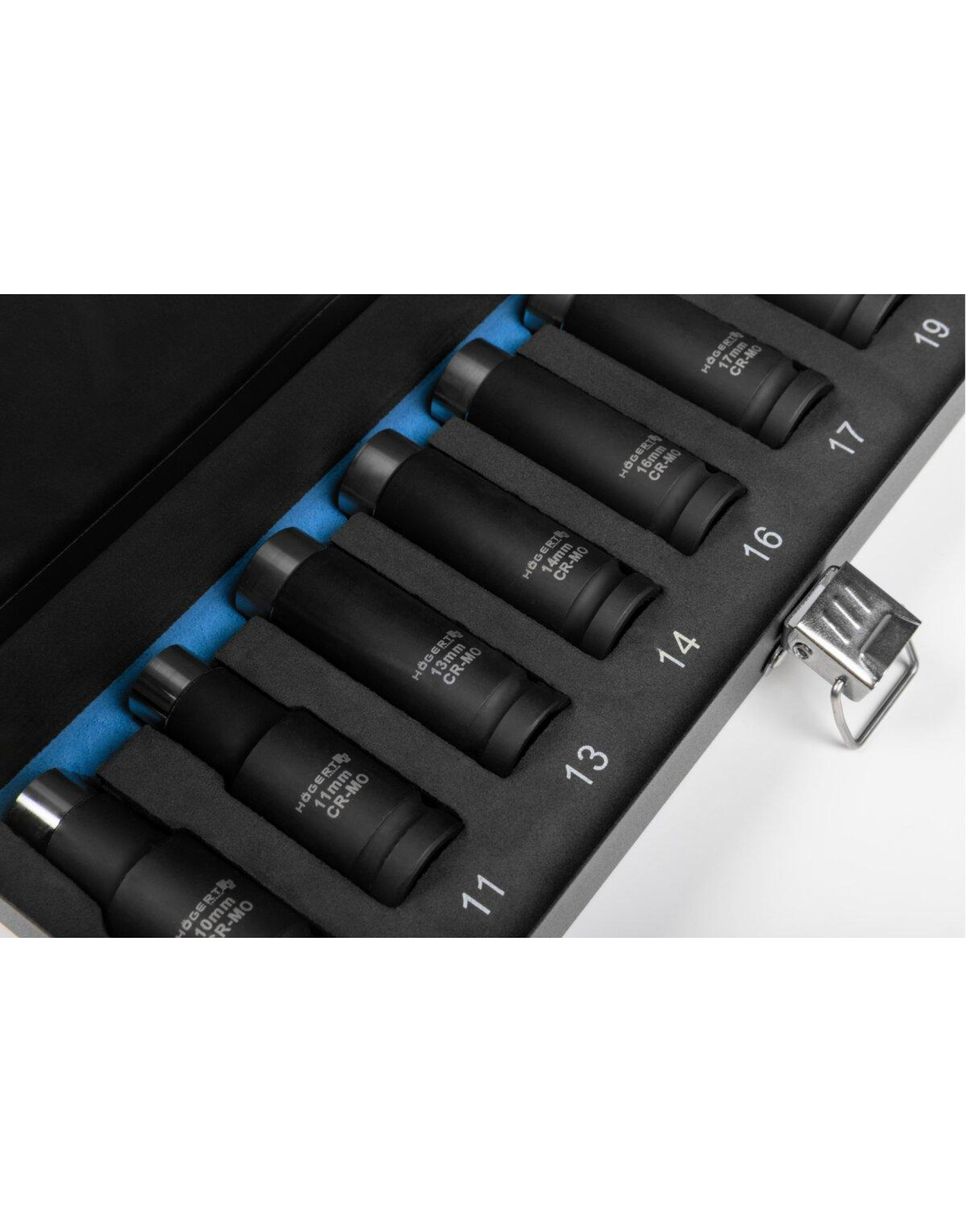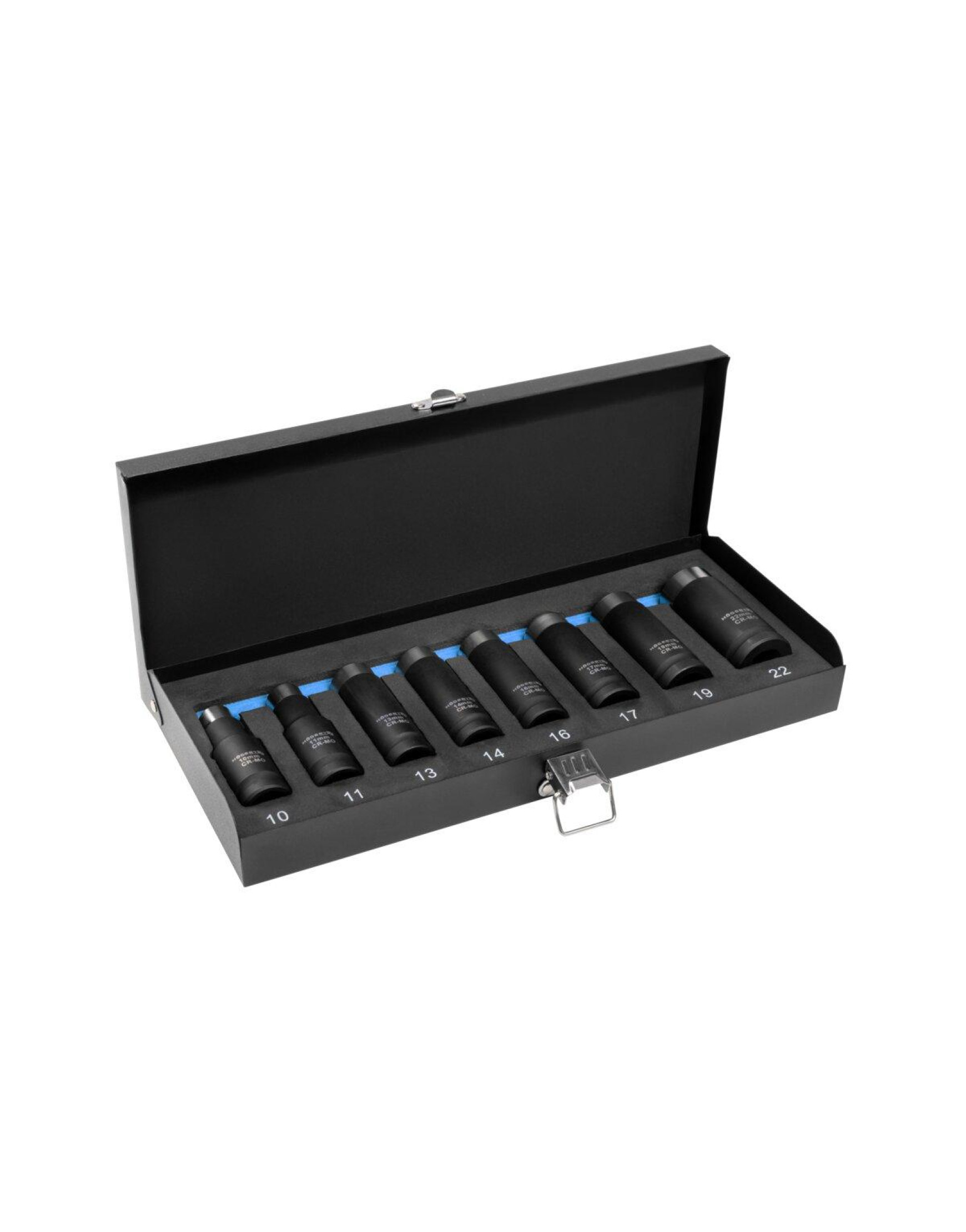 Súprava obsahuje najčastejšie používané veľkosti – od 10 do 22 mm – starostlivo usporiadané v elegantnom kovovom puzdre. To nielen chráni príslušenstvo pred poškodením, ale taktiež umožňuje udržiavať všetky dielne v poriadku.
