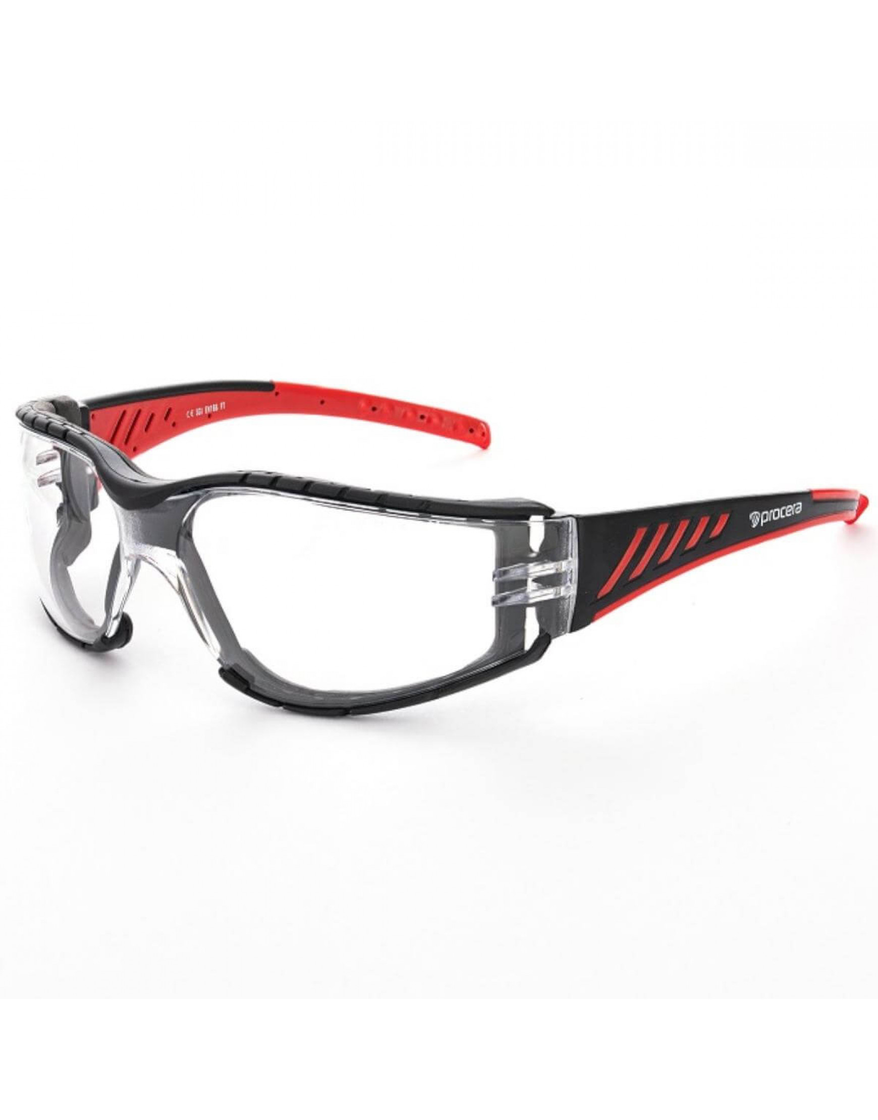 Ochranné okuliare MARCUS sú ľahké, veľmi pohodlné so širokým zorným poľom, vyrobené z odolného polykarbonátu. Číre šošovky sú odolné voči poškriabaniu (anti-scratch) a zahmlievaniu, vhodné na dlhodobé nosenie a nemenia farbu pozorovaných predmetov. Rám z peny EVA je odnímateľný. Spĺňajú európske normy EN166. Optická trieda: 1 – okuliare určené na nepretržité nosenie. Mechanická odolnosť: F – nízka energia nárazu – odolné voči nárazu oceľovou guľôčkou s hmotnosťou 0,86 g pri rýchlosti 45 m/s, T – testované na odolnosť voči nárazu pri extrémnych teplotách od -5 °C do +55 °C. Balenie: kartón 12/300 kusov. Farba: čierna a červená / šošovky: číre