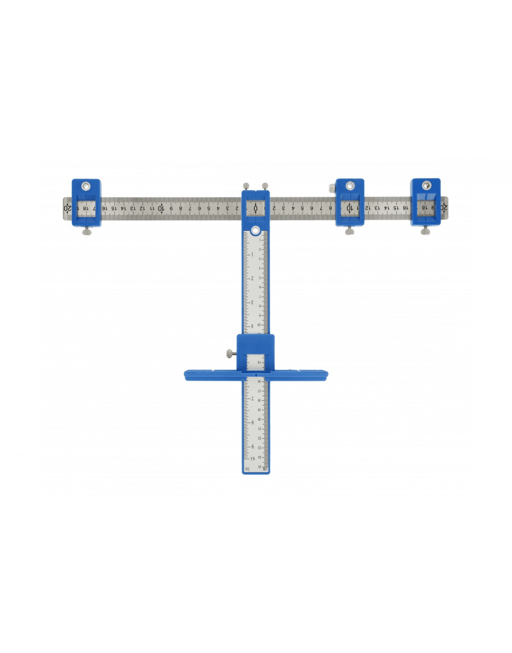 Šablona s vodítkem je určena k přesnému označení místa pro vyvrtání otvorů. Je používána především v truhlářské výrobě. Hlavní lišta, která je vybavena měřidlem, umožňuje vyznačení bodů až do 250 mm do hloubky nábytku. V horní části nástroje je umístěna pohyblivá ocelová lišta, na které jsou umístěny tři posuvné značkovače, které slouží pro přesné označení místa pro vyvrtání otvorů. Současně lze označit čtyři místa pro vyvrtání otvorů ve vzájemně různých vzdálenostech, a po aretaci daného nastavení vytvořit značku pro vyvrtání otvorů v dalším kusu / čelní desce. Šablona usnadňuje označení místa pro vyvrtání otvorů v různých materiálech, např. dřevě, kovu, plastu. Pokud nastavíme zarážku, umístěnou na levém upínacím prvku, kolmo, dosáhneme stabilní polohy šablony ve vodorovném nebo svislém směru. Všechny 3 svorky mají stavěcí šroub, díky čemuž lze nastavený rozměr znovu použít pro označení dalšího předmětu. Kolejnice je vyrobena z nerezové oceli a hliníku a nastavovací prvky jsou z velmi kvalitního plastu ABS.