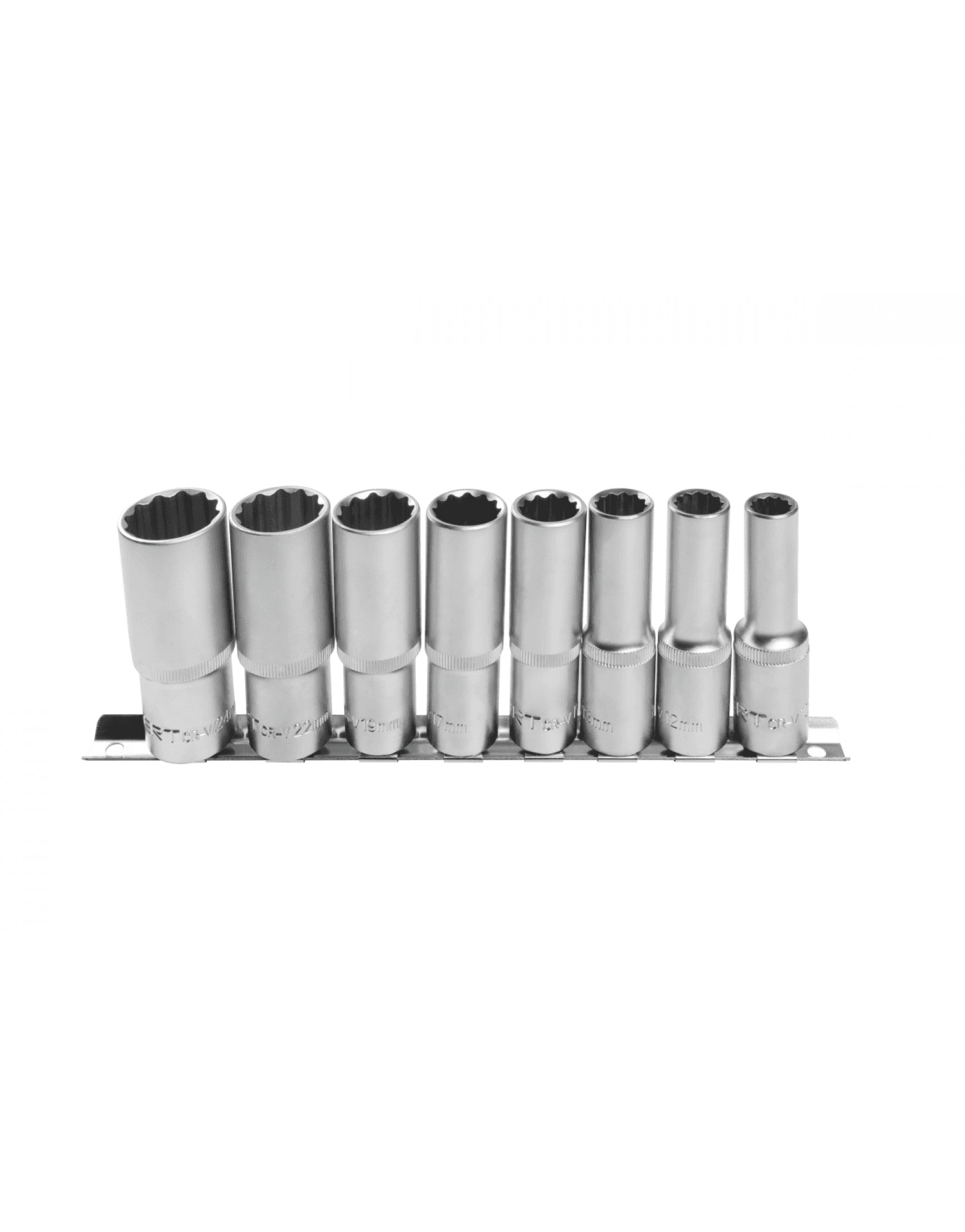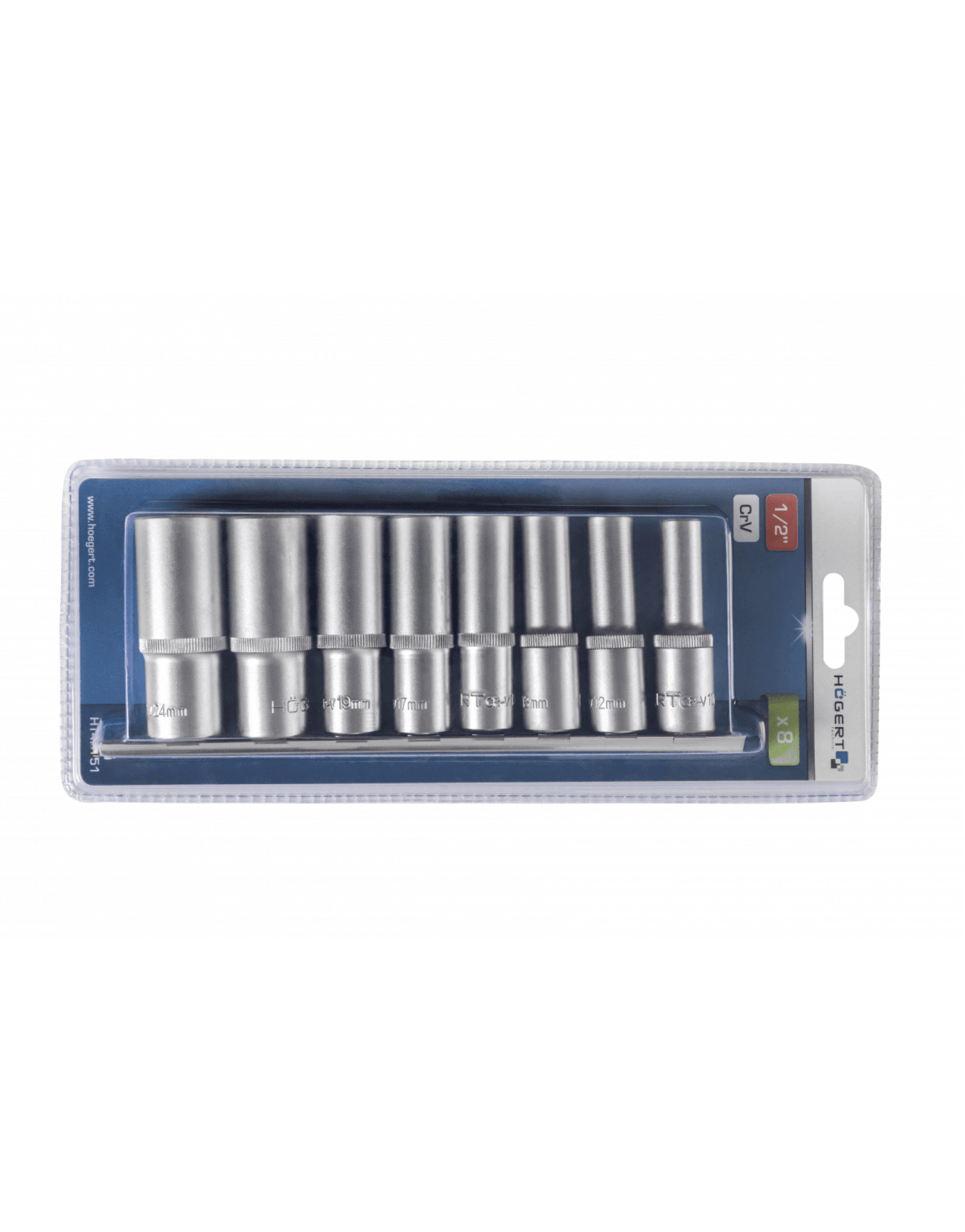 Počet nástrčných hlavic – 8 ks Velikosti pracovních bitů: – 10, 12, 13, 15, 17, 19, 22, 24 mm; Délka nástrčné